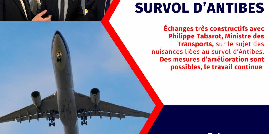 continuer la lectureJ’ai de nouveau échangé avec le ministre des transports, Philippe Tabarot, et son cabinet au sujet des nuisances liées au survol aérien d’Antibes. Des mesures d’amélioration sont possibles, et nous travaillons activement pour les concrétiser. J’ai également demandé l’organisation d’une visite de terrain dédiée à ce sujet, en présence de Jean Leonetti et du directeur de l’aéroport, avec un objectif …