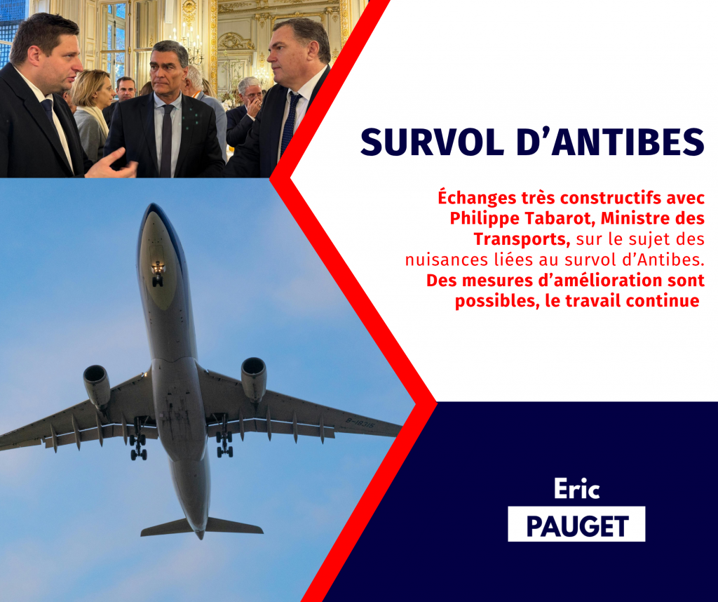 J’ai de nouveau échangé avec le ministre des transports, Philippe Tabarot, et son cabinet au sujet des nuisances liées au survol aérien d’Antibes.